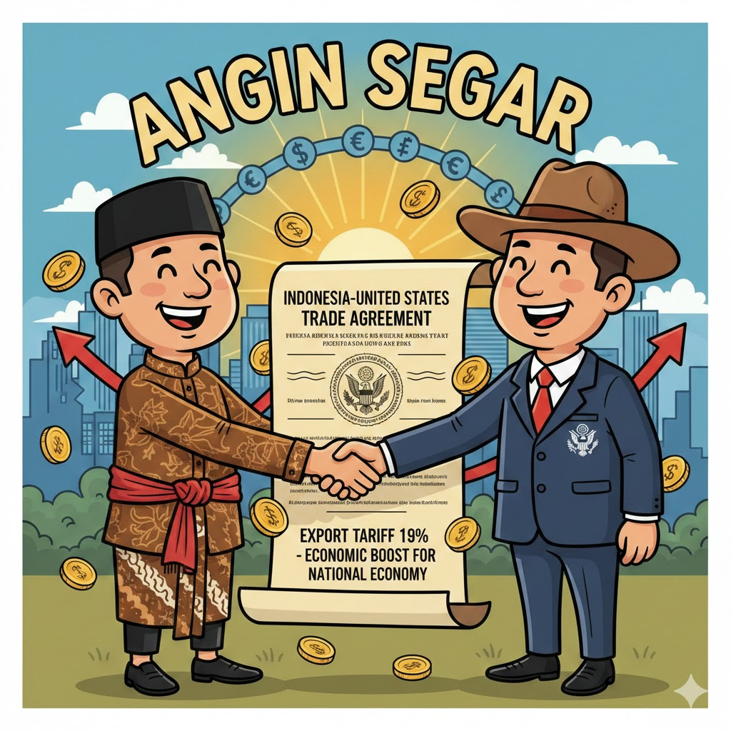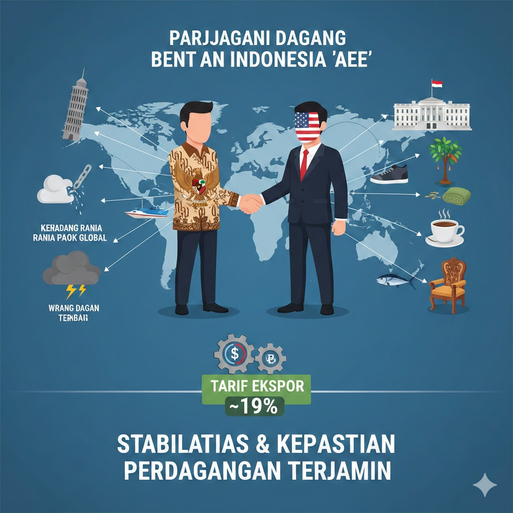 Perjanjian dagang terbaru antara Indonesia dan Amerika Serikat menetapkan tarif ekspor Indonesia sekitar 19 persen, memberikan kepastian dan stabilitas perdagangan bilateral. Kesepakatan ini berpotensi meningkatkan ekspor tekstil, karet, kopi, dan produk lainnya, sekaligus mendorong investasi, lapangan kerja, dan pertumbuhan ekonomi nasional. Meski begitu, peningkatan daya saing dan pemenuhan standar global tetap menjadi tantangan utama ke depan.