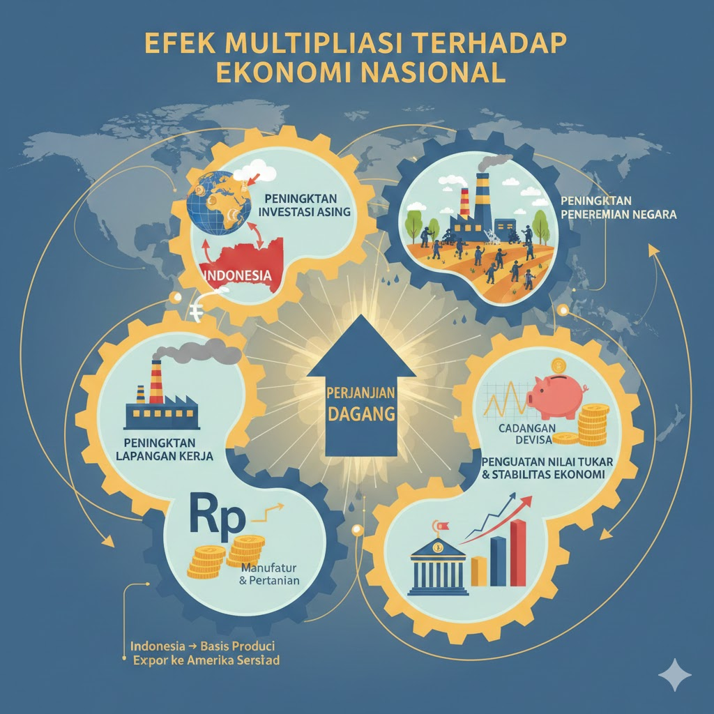 Perjanjian dagang ini tidak hanya berdampak langsung pada sektor ekspor, tetapi juga menciptakan efek multiplikasi (multiplier effect) terhadap perekonomian nasional.