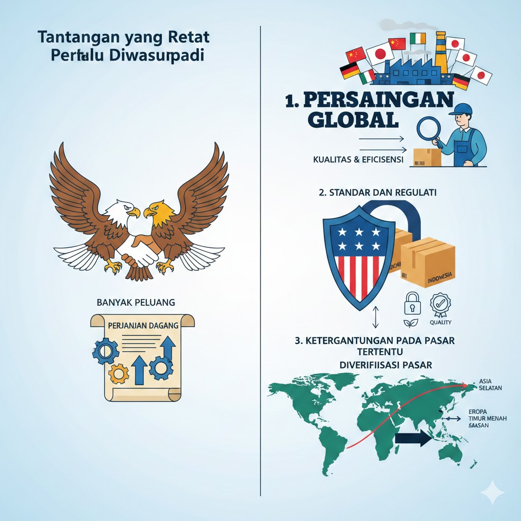 Pasar Amerika Serikat sangat kompetitif. Negara-negara lain juga memiliki perjanjian dagang atau tarif preferensial. Indonesia harus terus meningkatkan kualitas produk dan efisiensi produksi agar tetap kompetitif.